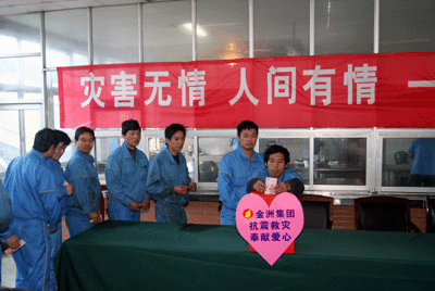 浙江金洲管道科技股份有限公司全體干部員工積極響應(yīng)號召,踴躍為災(zāi)區(qū)人民捐款。5月15日上午,在管道科技食堂舉行了“抗震救災(zāi),奉獻(xiàn)愛心”捐款儀式,金洲集團(tuán)公司黨委書記、董事長俞錦方、副董事長、工會主席徐水榮參加了捐款儀式。捐款儀式上副董事長徐水榮宣讀了公司黨委文件,董事長俞錦方作了重要講話要求大家充分發(fā)揚(yáng)金洲人“講責(zé)任,有愛心,愛奉獻(xiàn)”的傳統(tǒng),積極投身到“抗震救災(zāi),奉獻(xiàn)愛心”活動中去;隨后在公司俞董事長帶頭捐款下,全體干部職工紛紛慷慨解囊,一份份飽含關(guān)切之情的捐款被投進(jìn)了捐款箱中。