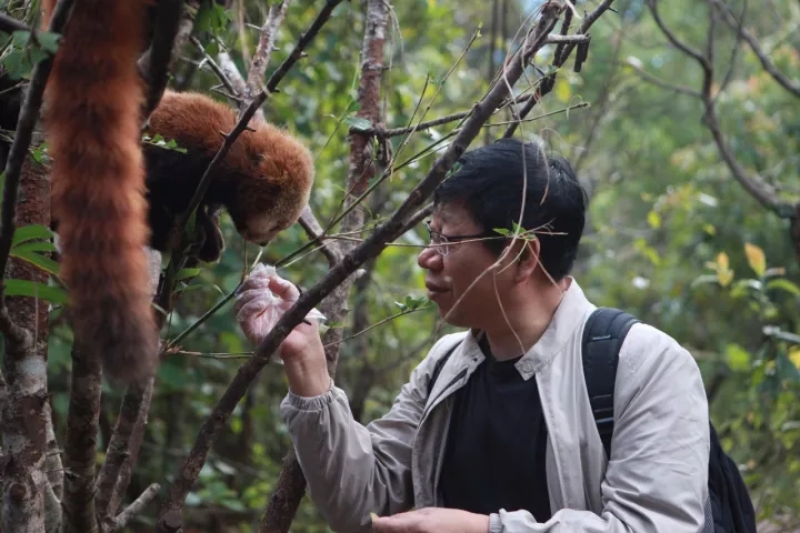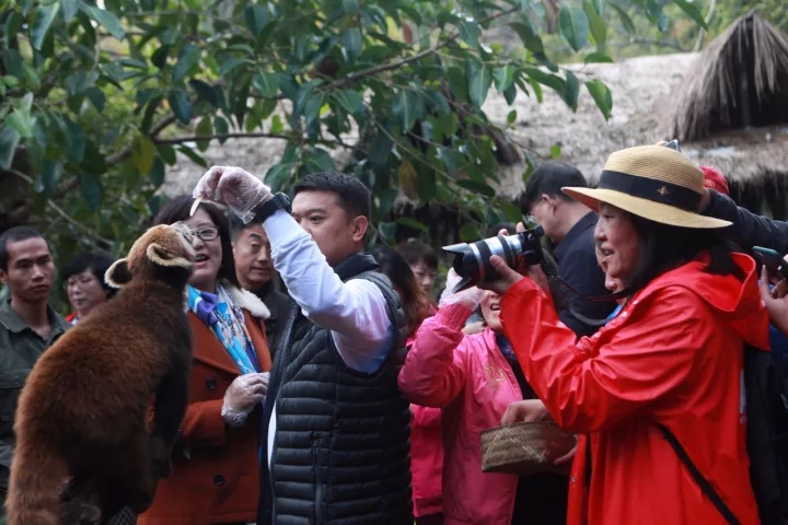 ▲企業(yè)家與小熊貓等野生動物進(jìn)行親密互動,人與野生動物如此友好的相處模式,讓現(xiàn)場的人驚喜不已