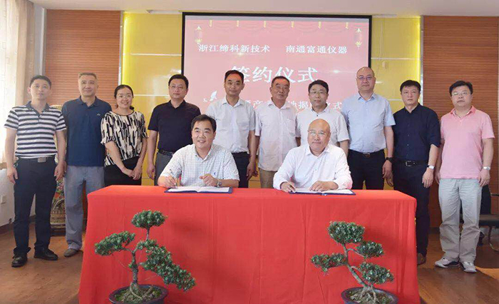 為充分發(fā)揮合作優(yōu)勢(shì),實(shí)現(xiàn)“共享、共贏、共發(fā)展”的合作目標(biāo),6月27日上午,浙江締科新技術(shù)發(fā)展有限公司(以下簡(jiǎn)稱締科公司)與南通富通儀器有限公司簽約暨富通產(chǎn)業(yè)基地揭牌儀式在南通舉行。南通濱江新區(qū)黨工委副書(shū)記、管委會(huì)主任、五接鎮(zhèn)黨委書(shū)記孫偉俊,五接鎮(zhèn)黨委副書(shū)記紀(jì)建峰,五接鎮(zhèn)副鎮(zhèn)長(zhǎng)徐美云,金洲集團(tuán)、締科公司董事長(zhǎng)俞錦方,金洲集團(tuán)總裁周新華,締科公司副總經(jīng)理周偉,南通富通儀器有限公司總經(jīng)理王繼東等出席簽約暨揭牌儀式。此次活動(dòng),標(biāo)志著雙方締結(jié)戰(zhàn)略同盟,推動(dòng)產(chǎn)業(yè)融合發(fā)展邁出了實(shí)質(zhì)性步伐。
