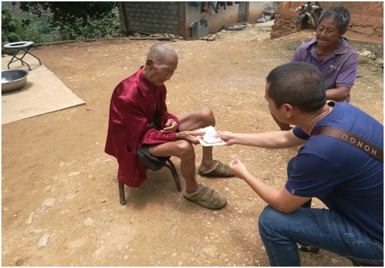 ▲慰問瀾滄縣上允鎮(zhèn)上允村水塘一隊(duì)老兵陳小友