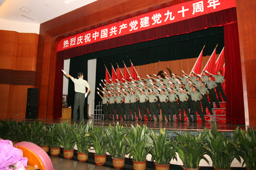 2011年7月1日,在這隆重紀(jì)念中國(guó)共產(chǎn)黨成立90周年的特殊日子里,金洲全體黨員來到第一集團(tuán)軍駐地,參觀軍史陳列館、體驗(yàn)連隊(duì)生活、聽取先進(jìn)事跡報(bào)告、黨委書記俞錦方作了題為《從成功走向輝煌》的講話,隨后舉行了軍民同臺(tái)聯(lián)歡會(huì),參觀了裝甲坦克團(tuán),與部隊(duì)指戰(zhàn)員共敘魚水深情,共慶黨的九十華誕。