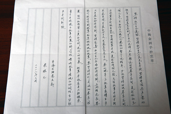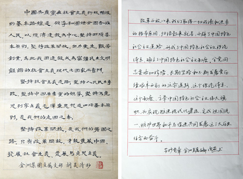 近日,為慶祝中國共產(chǎn)黨成立95周年,積極推進(jìn)“兩學(xué)一做”活動(dòng)深入開展,提升黨員、職工的文化藝術(shù)素養(yǎng)和書寫能力,進(jìn)一步構(gòu)建和諧企業(yè)、和諧社會(huì),不斷營造企業(yè)職工愛國愛黨、崇德向善的濃厚氛圍,金洲集團(tuán)黨工團(tuán)聯(lián)合開展“手抄黨章”比賽活動(dòng)。本次比賽得到了廣大黨員、職工的積極參與,共收到120余件作品,其中2件作品全文抄錄黨章。