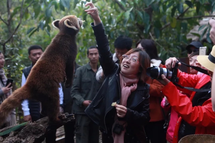 ▲企業(yè)家與小熊貓等野生動物進(jìn)行親密互動,人與野生動物如此友好的相處模式,讓現(xiàn)場的人驚喜不已