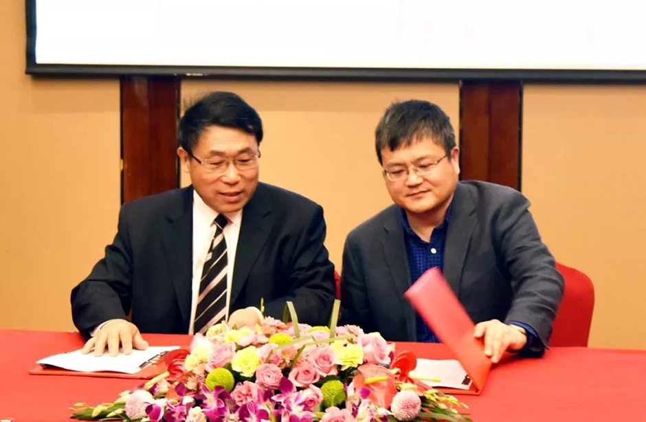 俞錦方董事長(zhǎng)和姜巖峰教授上臺(tái)簽約