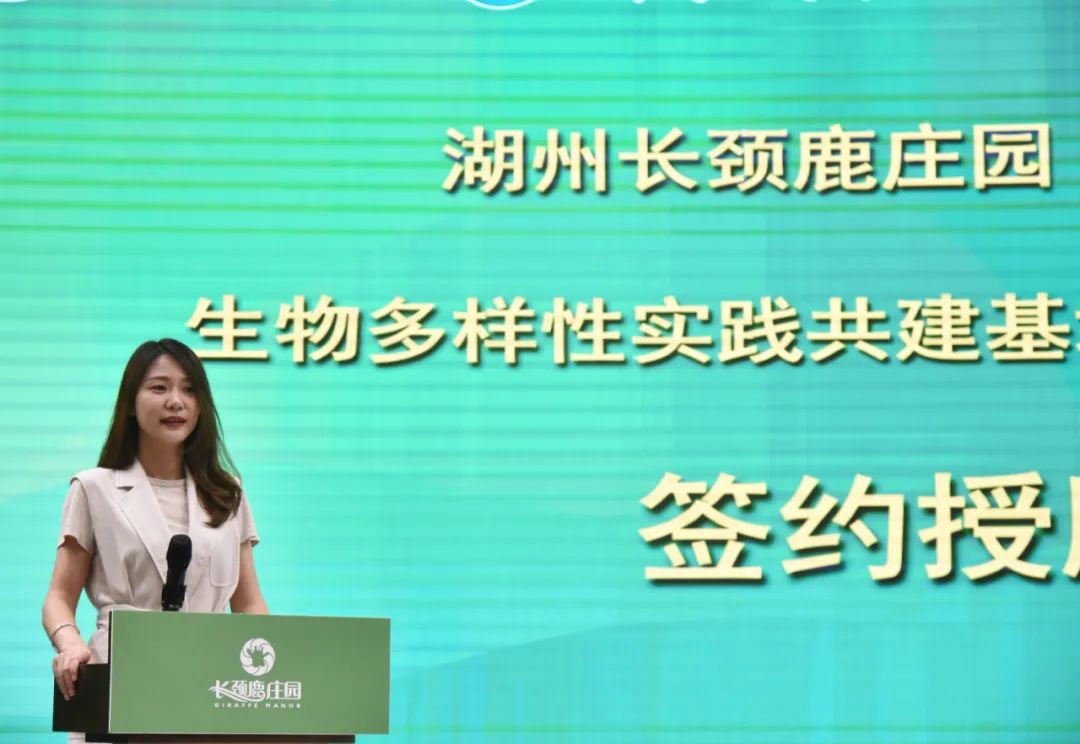 吳興高級中學(xué)副校長潘莉娟為長頸鹿莊園授牌
