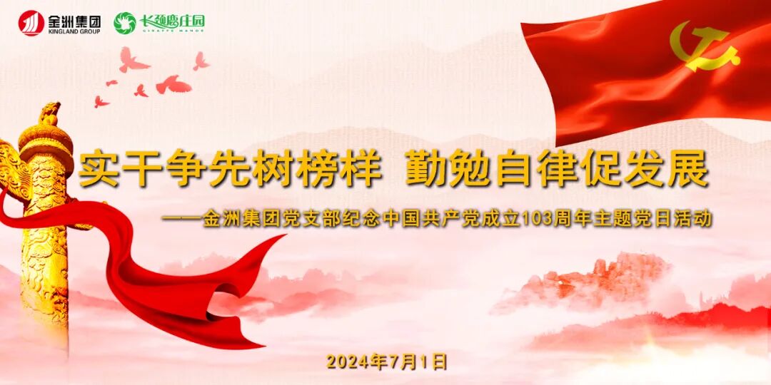 為慶祝中國共產(chǎn)黨建黨103周年,深入學(xué)習(xí)貫徹黨的二十大精神,認(rèn)真落實(shí)中央和省委、市委、區(qū)委關(guān)于黨紀(jì)學(xué)習(xí)教育工作的部署要求,引導(dǎo)和激勵(lì)廣大黨員積極發(fā)揮戰(zhàn)斗堡壘和先鋒模范作用,金洲集團(tuán)黨支部與長頸鹿莊園黨支部決定在“七一”建黨節(jié),共同開展“實(shí)干爭(zhēng)先樹榜樣 勤勉自律促發(fā)展”主題黨日活動(dòng)。金洲集團(tuán)黨支部副書記、集團(tuán)總裁周新華,金洲集團(tuán)總裁助理兼辦公室主任劉凱等公司高管,金洲黨支部在湖全體支部委員、黨員、長頸鹿莊園黨支部在湖全體黨員、預(yù)備黨員和入黨積極分子,以及中層以上干部出席參加了本次活動(dòng)。